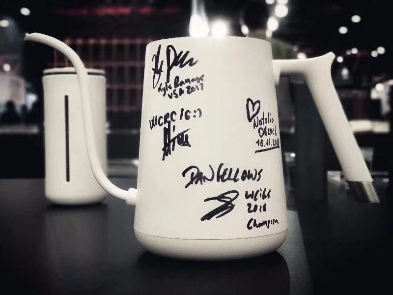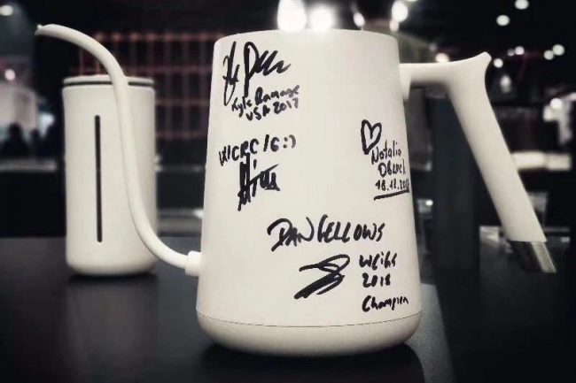 ALL-STAR的明星咖啡师看到了咱们的中国原创咖啡器具-电鱼,灰常喜欢,纷纷在上面留下了自己的签名。这把电鱼也成为了泰摩的镇店之宝。